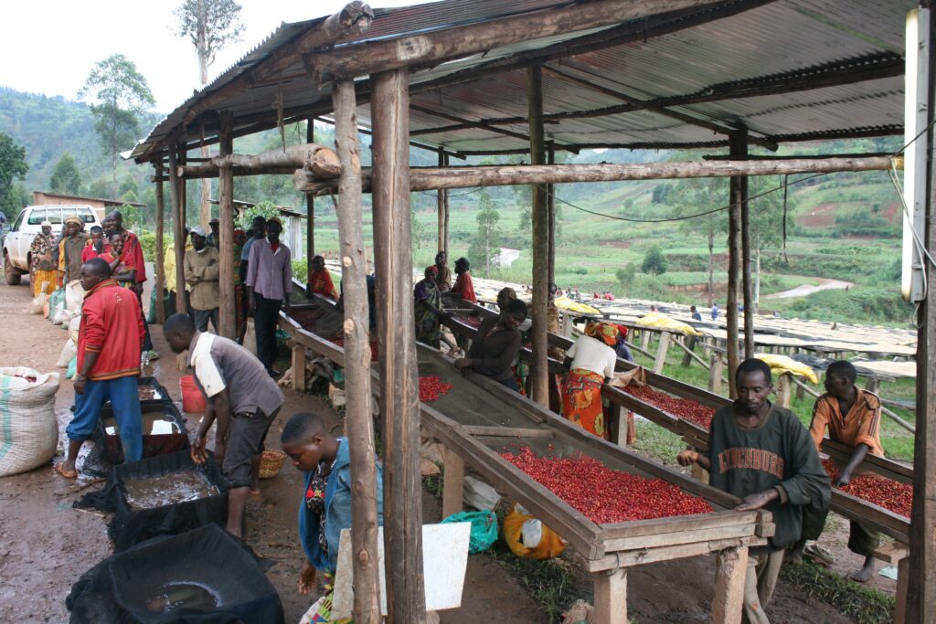 Built in 1991, Gakenke station has 2,685 registered farmer members, spread over 22 hills in Gatare commune, Kayanza province. These are organized in groups of 30 people, headed by a producer leader to facilitate communication and organization with the washing station. The farmers typically have an average of 250 trees. Each tree yields an average of 1.5 kilos of cherry so the average producer sells about 200 to 300 kilos of cherry annually. The washing station participates in a number of farmer outreach and support projects including a livestock rearing project and a range of Farmer Hub projects centered on strengthening cooperatives and improving yields.
