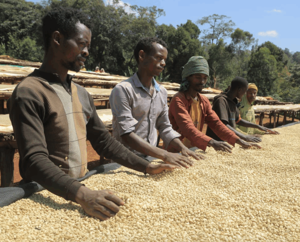 Rako is a small kebele (community) in Ethiopia’s celebrated Yirgacheffe region, located within the Kochere district of the Gedeo Zone. Farmers here grow coffee on 1–2 hectare plots, often intercropping with false banana and acacia trees that provide shade and enrich the soil. Coffee is their main livelihood, and deliveries of ripe cherry—carried by foot or motorcycle—go to the Rako washing station. Established in 2017 on 2.5 hectares of land, the station now processes 450–550 tons annually. Pulping, fermenting, washing, and drying are handled with precision, while parchment is carefully stored until milling. Traceability is maintained through lot separation and detailed record-keeping. With high elevation and indigenous varieties, Rako produces smaller beans that embody Yirgacheffe’s hallmark elegance and floral character.